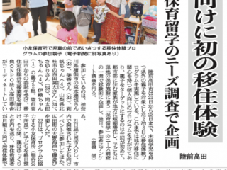 【新聞】9/21~23親子向け移住体験プログラム実施 東海新報