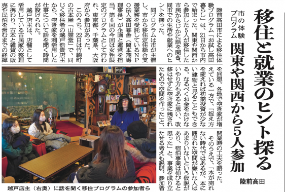 【新聞】移住体験プログラム ー東海新報 掲載情報 コンテンツ 2月21日(土)~23日(月)に行われた移住体験プログラムの様子が東海新報にて掲載されました。 『東海新報 2026年2月23日付 日刊掲載』 ← お知らせ 一覧へ